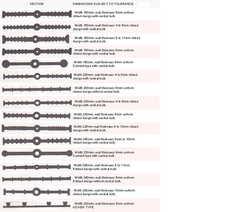 PVC waterstop sizes and selection